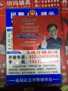 飛虎開(kāi)鎖有限公司天津分公司全年24小時(shí)上門(mén)服務(wù),主要從事開(kāi)鎖、修鎖、換鎖芯、安裝鎖具、貓眼、對(duì)講門(mén)、改門(mén)把手,承包鎖具工程的改造,開(kāi)修各種保險(xiǎn)